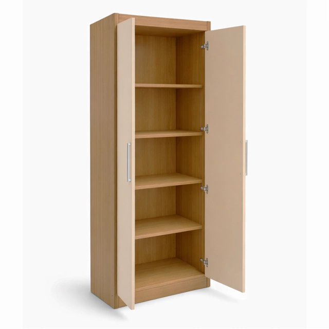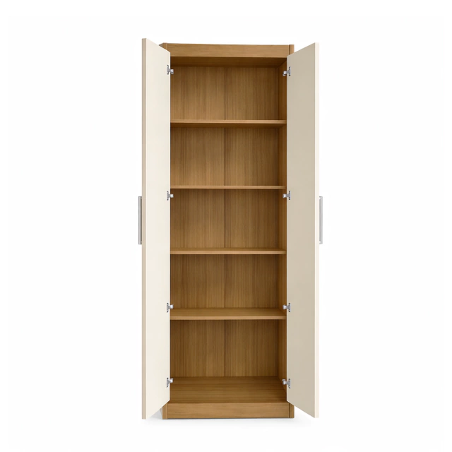 Fabricado por la marca Máximo, este despensero utiliza aglomerado recubierto con melamina opaca de alta calidad. Los interiores están totalmente recubiertos, lo que garantiza una limpieza sencilla y mayor protección contra la humedad ambiente. Las bisagras metálicas aseguran un cierre preciso y una larga vida útil incluso con uso intensivo.